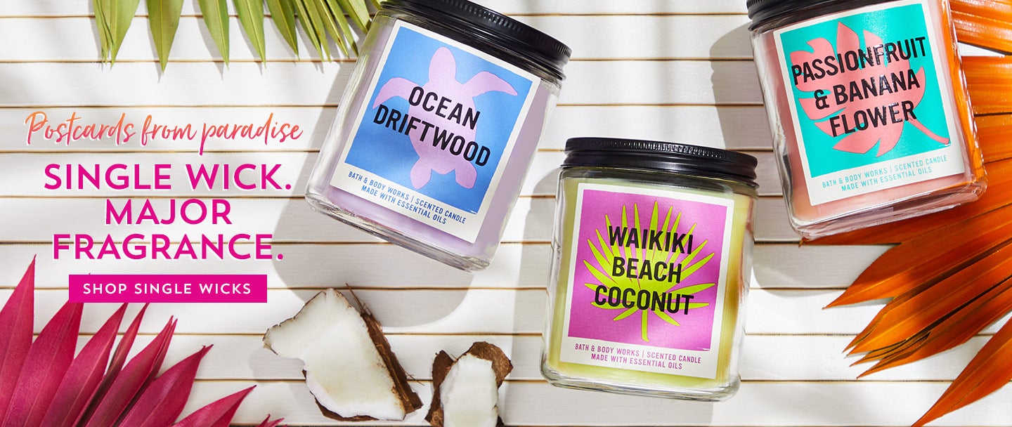 Bath and Body Works is your go-to place for gifts & goodies that surprise & delight. From fresh fragrances to soothing skin care, we make finding your perfect something special a happy-memory-making experience. Searching for new seasonal creations or your favorite discontinued scents? We’ve got you covered there, too. Oh! And while you're browsing, shop our latest & greatest selection of lotions, soaps and candles!